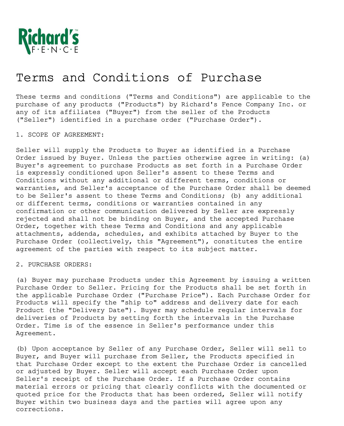 Richard's Fence warrants to the original purchaser that its Vinyl Fabric and Framework is free from defect in material and workmanship and under normal or proper usage will not corrode, rust, or fade for a period of 12 years from the date of purchase. View certificate for more details.